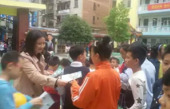 項目負責人解冰為學生發放兒童食品安全手冊